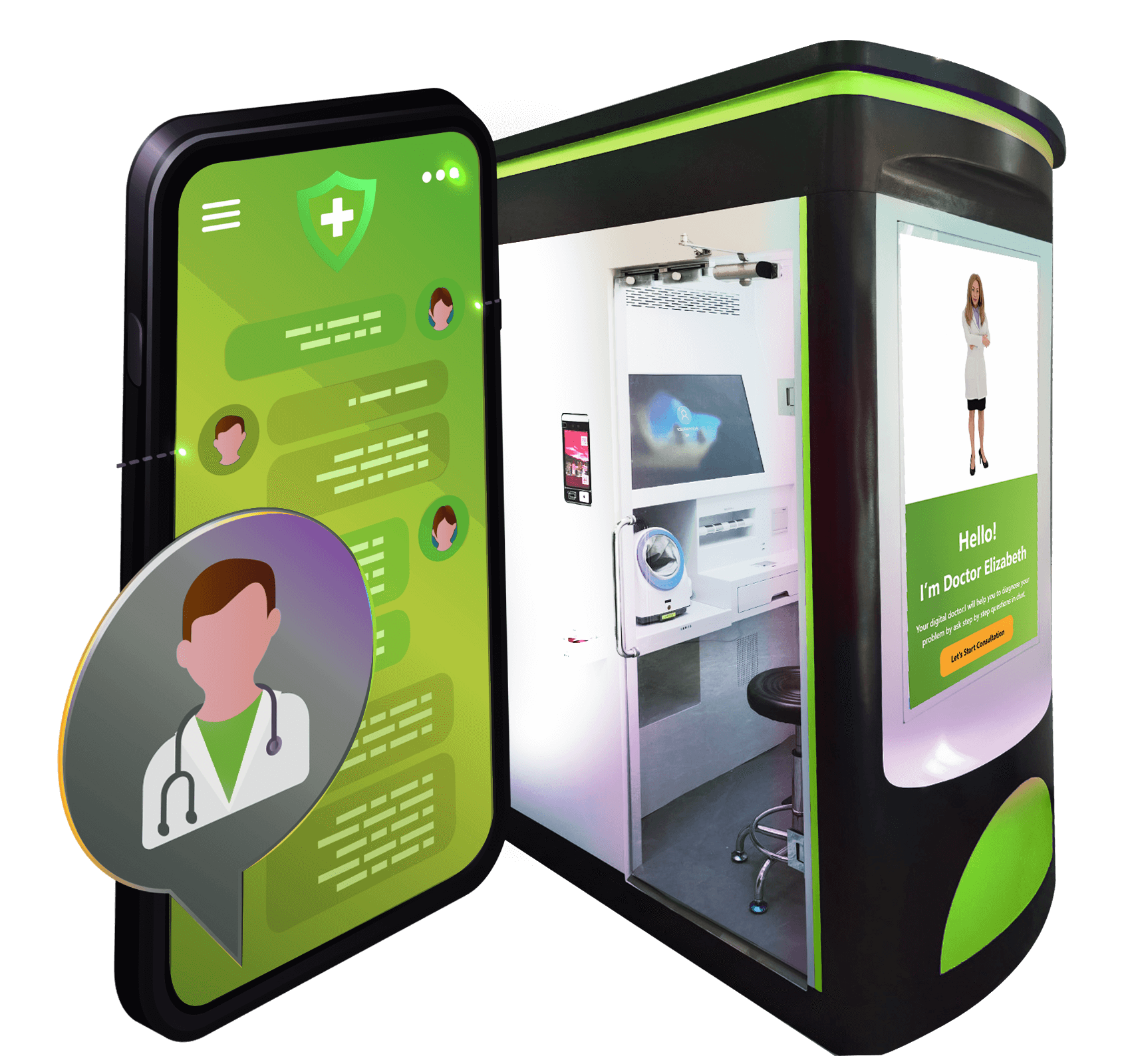 The Pod engages patients through an intuitive chatbot, leveraging deep learning and Large Language Models for precise diagnostic insights. It automates initial patient assessments, optimizing operational efficiency.